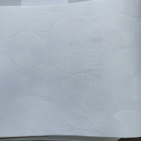 Обои с окружностями также подойдут для несовершенных стен, так как рисунок может замаскировать мелкие погрешности поверхности.
