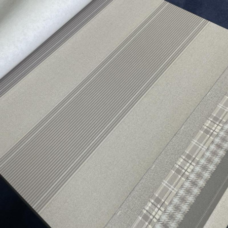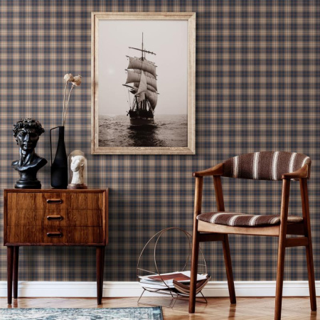 Текстильные клетчатые рисунки переданы невероятно натуралистично. Текстуры твида и шерсти в традиционную «гусиную лапку», клетка тартан и широкая полоска показаны просто виртуозно. Эти покрытия создают ощущение, что стены оформлены не обоями, а настоящим текстилем!